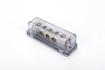 The DB2034 Power Distribution Block is expertly crafted for advanced car audio systems, facilitating efficient and reliable power distribution. This high-quality unit features two 0/2 gauge inputs and three 4 gauge outputs, providing excellent flexibility for connecting multiple amplifiers and ensuring a high-performance audio setup.